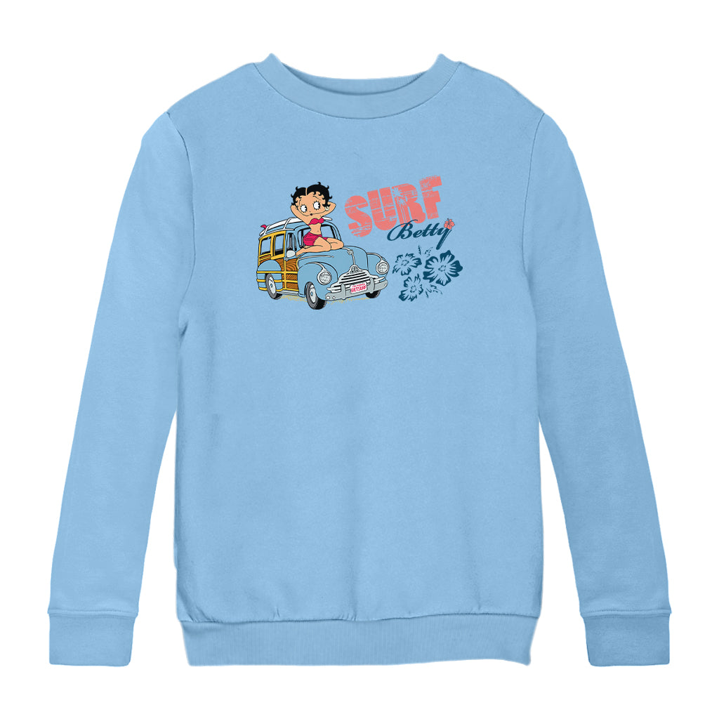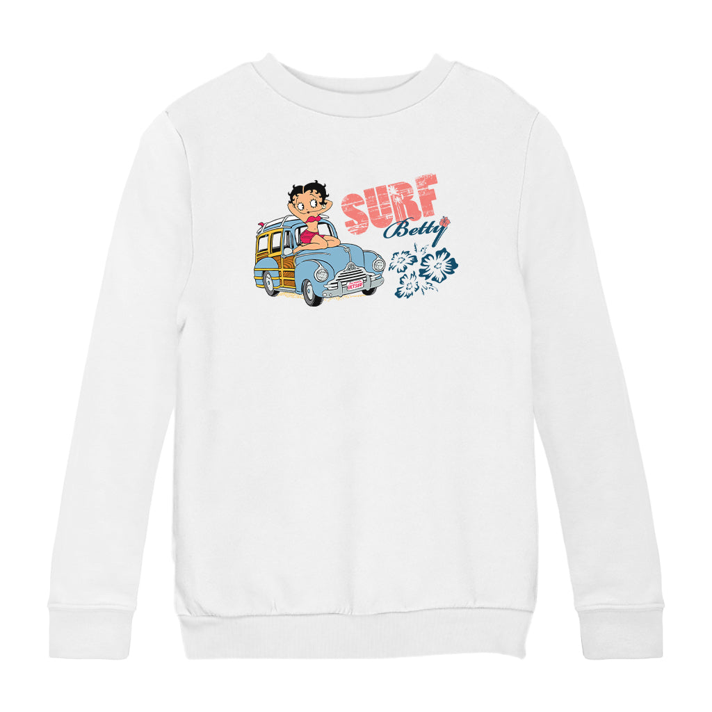 Betty Boop Pin Up Surf Car Kids Sweatshirt